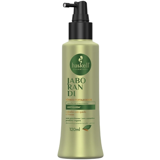 O tônico fortalecedor haskell jaborandi possui ação direcionada à estimulação da circulação no couro cabeludo, possui ação antiqueda e auxilia no crescimento.
